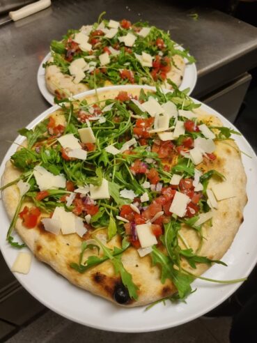 Pizzabrot mit gehackten Tomaten Rucola & Parmesankäse *2